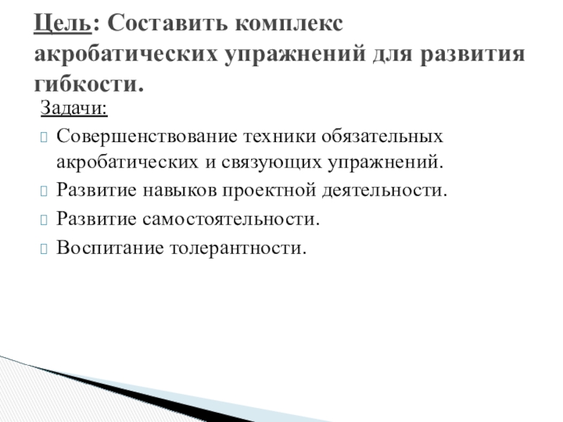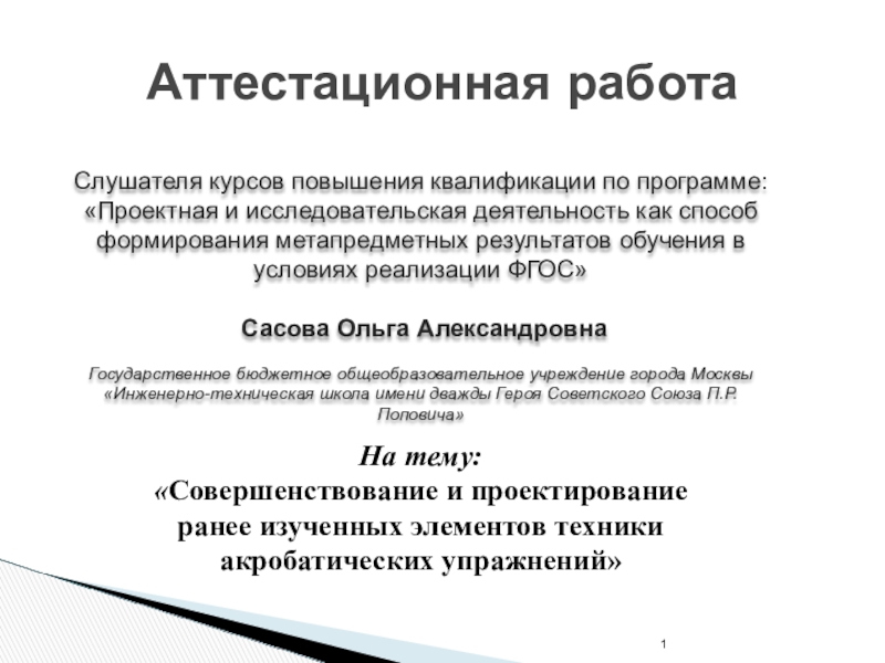 «Совершенствование и проектирование ранее изученных элементов техники акробатических упражнений»