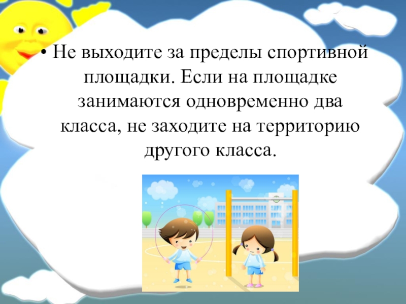 Слайд 5Не выходите за пределы спортивной площадки. Если на площадке занимаются одновременно