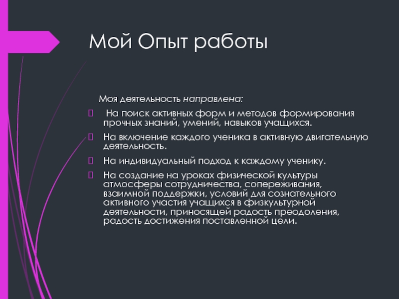На создание на уроках физической культуры атмосферы сотрудничества, сопереживания, взаимной поддержки, условий для сознательного активного участия учащихся в физкультурной деятельности, приносящей радость преодоления, радость достижения поставленной цели.