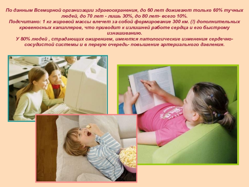 тучных людей, до 70 лет - лишь 30%, до 80 лет- всего 10%.