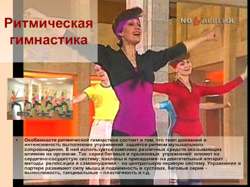 Особенности ритмической гимнастики состоит в том, что темп движений и
