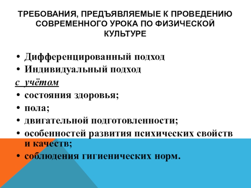 Слайд 2Требования, предъявляемые к проведению современного урока по физической культуре