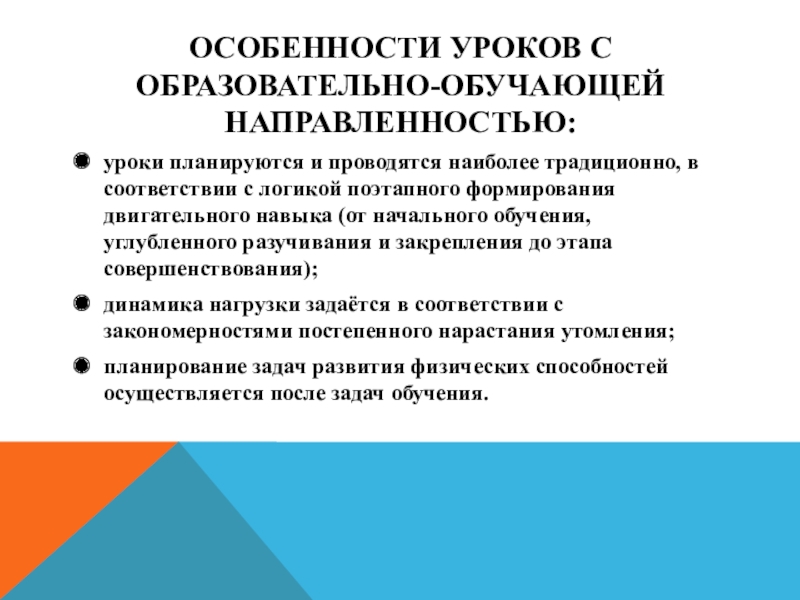 Слайд 7Особенности уроков с образовательно-обучающей направленностью: