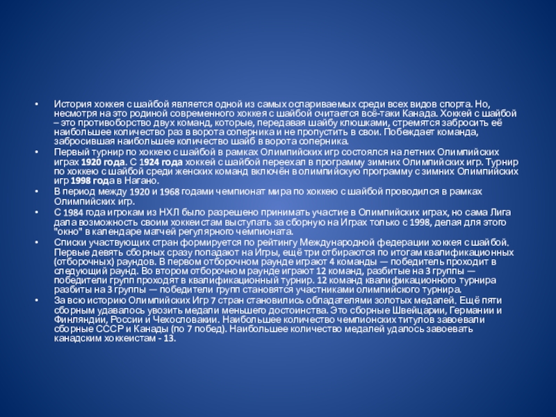 Слайд 31История хоккея с шайбой является одной из самых оспариваемых среди всех