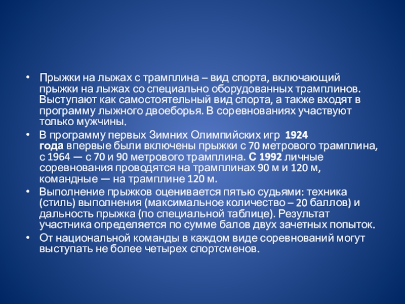 Слайд 19Прыжки на лыжах с трамплина – вид спорта, включающий прыжки на