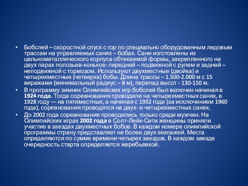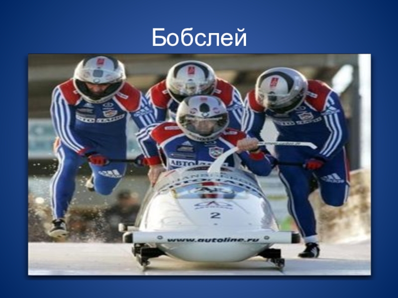 Слайд 7Бобслей – скоростной спуск с гор по специально оборудованным ледовым трассам