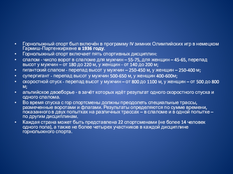 Слайд 9Горнолыжный спорт был включён в программу IV зимних Олимпийских игр в
