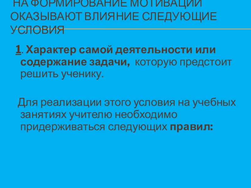 Слайд 7 НА ФОРМИРОВАНИЕ МОТИВАЦИИ ОКАЗЫВАЮТ ВЛИЯНИЕ СЛЕДУЮЩИЕ УСЛОВИЯ