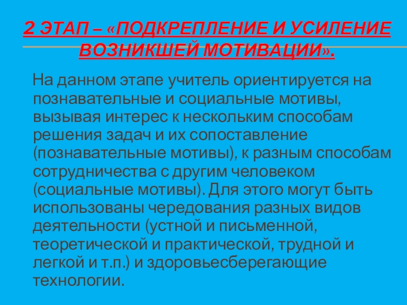 Слайд 152 ЭТАП – «ПОДКРЕПЛЕНИЕ И УСИЛЕНИЕ ВОЗНИКШЕЙ МОТИВАЦИИ».