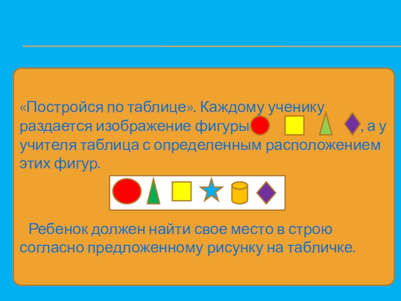 «Постройся по таблице». Каждому ученику раздается изображение фигуры