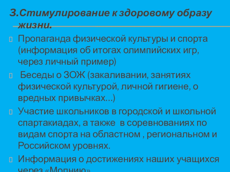 Слайд 213.Стимулирование к здоровому образу жизни.