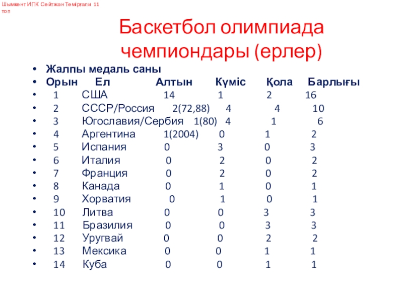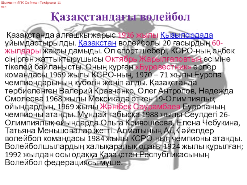 Шымкент ИПК Сейтжан Темірғали 11 топ