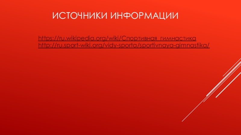 Источники информацииhttps://ru.wikipedia.org/wiki/Спортивная_гимнастикаhttp://ru.sport-wiki.org/vidy-sporta/sportivnaya-gimnastika/