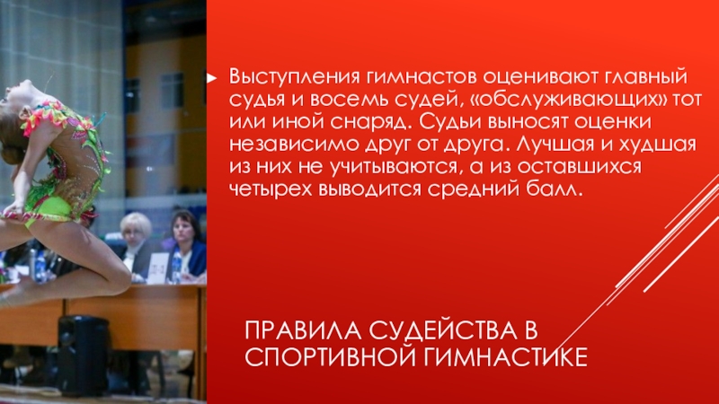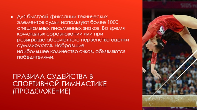 Слайд 10Правила судейства в спортивной гимнастике (продолжение)