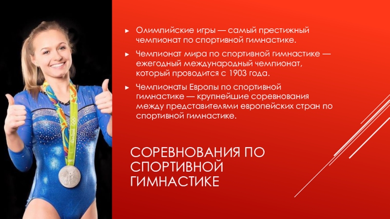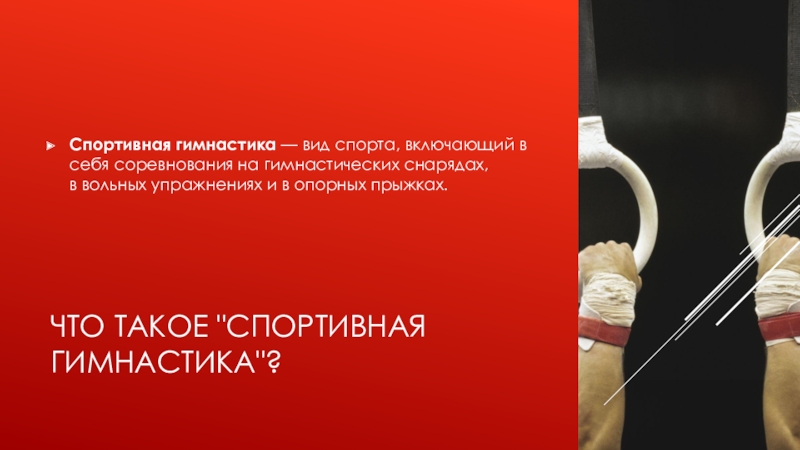 Спортивная гимнастика — вид спорта, включающий в себя соревнования на гимнастических снарядах,