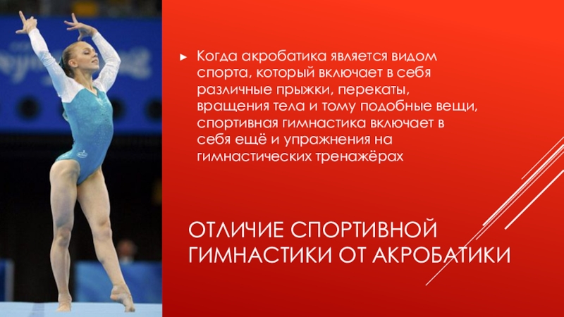 Слайд 11Отличие спортивной гимнастики от акробатики