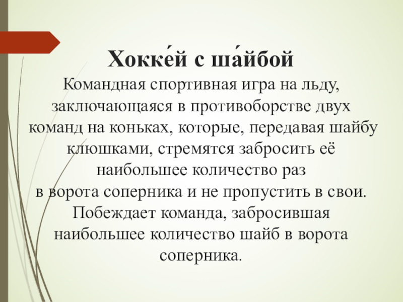 Командная спортивная игра на льду, заключающаяся в противоборстве двух команд на коньках, которые,