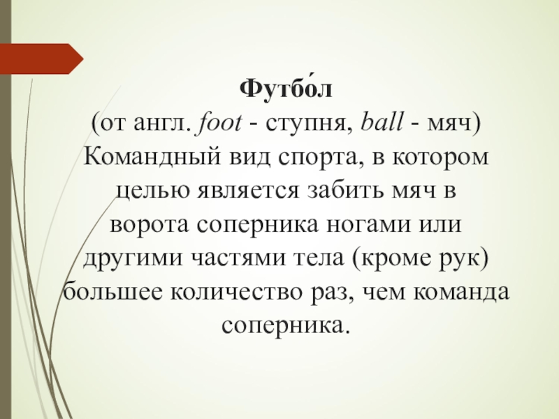 Командный вид спорта, в котором целью является забить мяч в ворота соперника