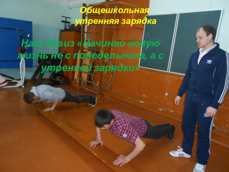 Общешкольная  утренняя зарядкаНаш девиз «Начинай новую жизнь не с понедельника, а с утренней