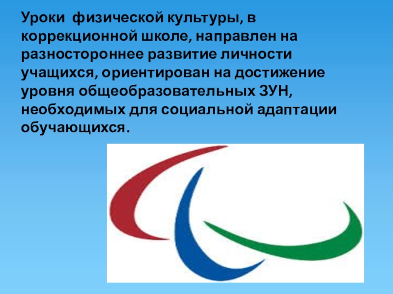 Слайд 2Уроки физической культуры, в коррекционной школе, направлен на разностороннее развитие личности
