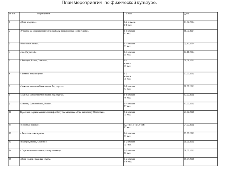 Физкультурно-оздоровительная и спортивно-массовая работа в школе