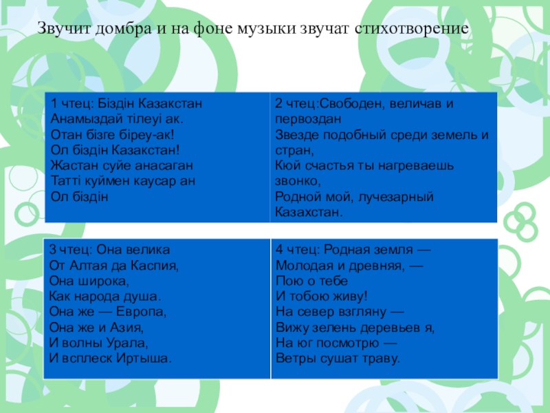 Слайд 6Звучит домбра и на фоне музыки звучат стихотворение