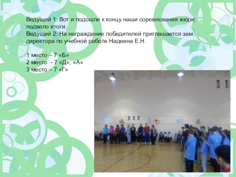 Ведущий 1: Вот и подошли к концу наши соревнования жюри, подвело
