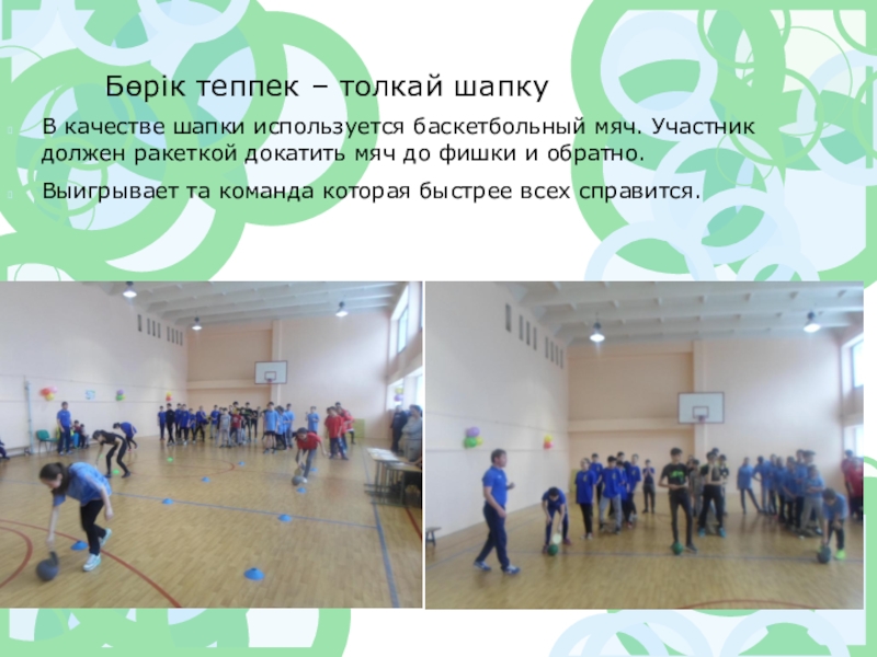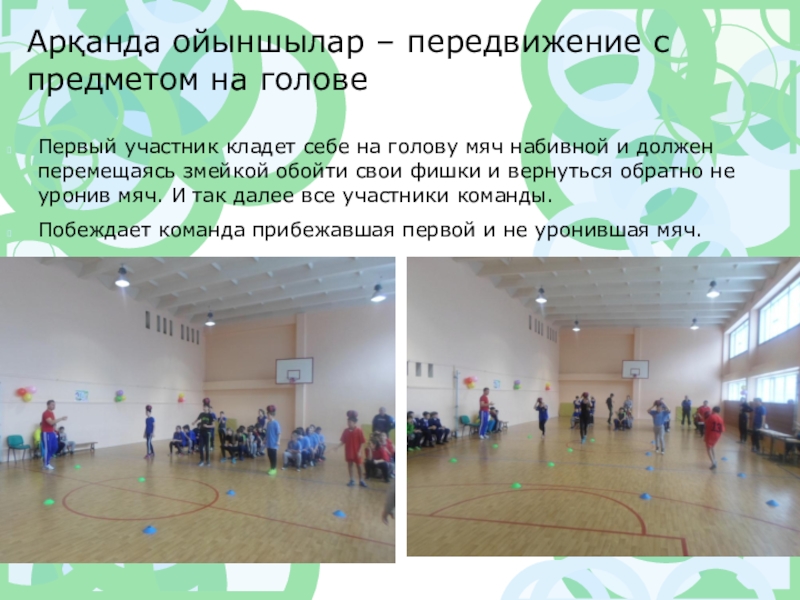 Слайд 19Арқанда ойыншылар – передвижение с предметом на голове