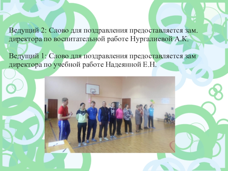 Слайд 5Ведущий 2: Слово для поздравления предоставляется зам. директора по воспитательной работе