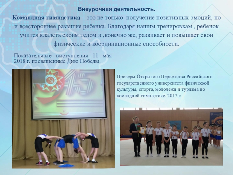 Призеры Открытого Первенства Российского государственного университета физической культуры, спорта, молодежи и туризма по командной гимнастике. 2017 г.