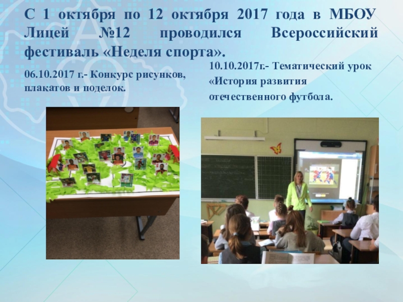 10.10.2017г.- Тематический урок «История развития отечественного футбола.
