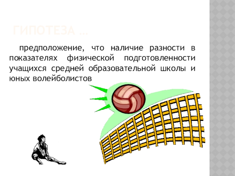 Гипотеза … предположение, что наличие разности в показателях физической подготовленности учащихся средней образовательной школы и юных волейболистов