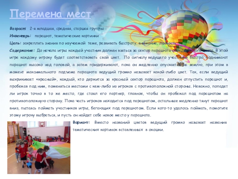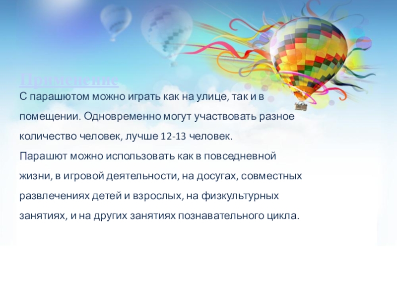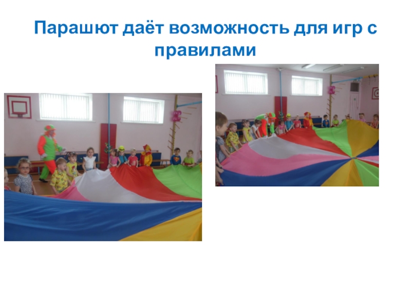 Слайд 12Парашют даёт возможность для игр с правилами