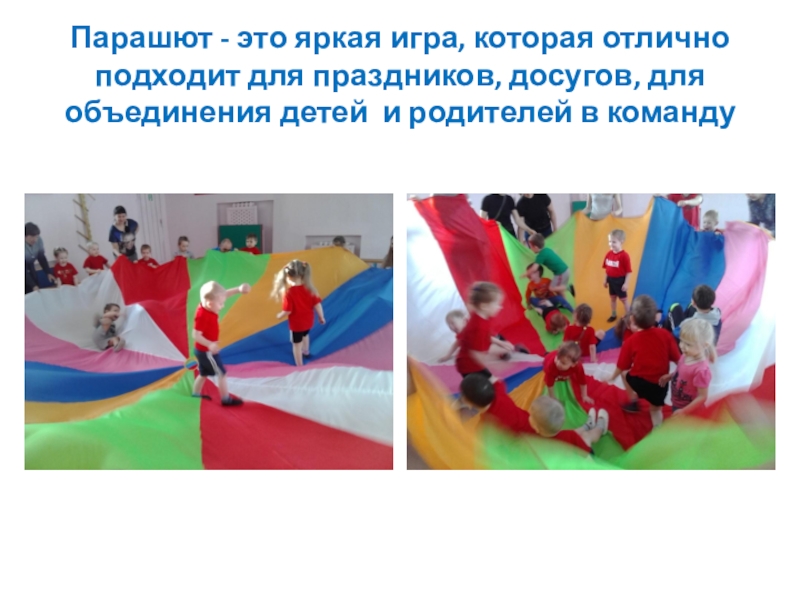 Слайд 10Парашют - это яркая игра, которая отлично подходит для праздников, досугов,