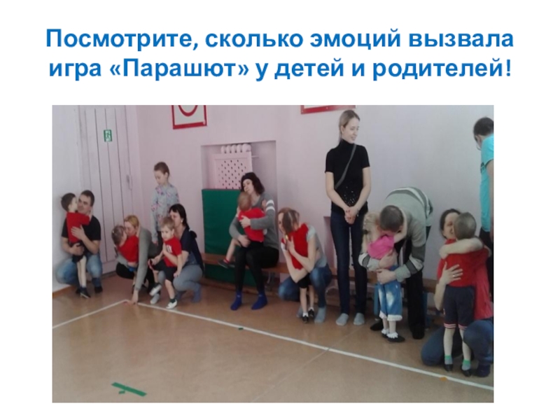 Слайд 15Посмотрите, сколько эмоций вызвала игра «Парашют» у детей и родителей!