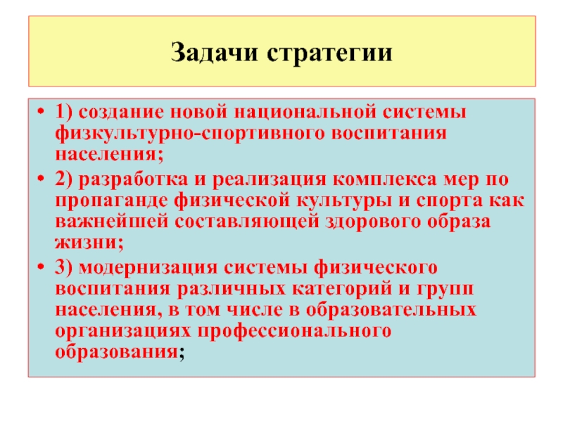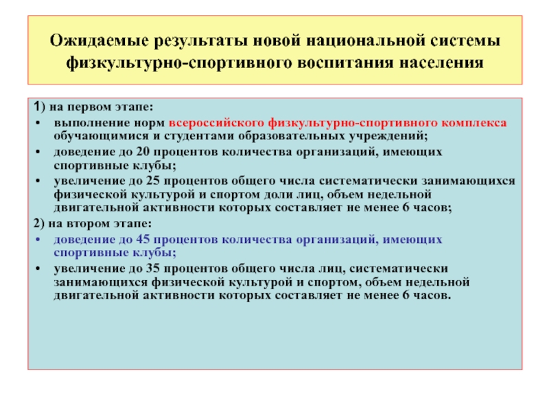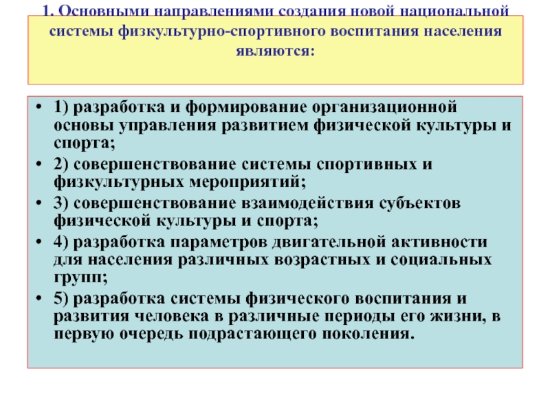 1) создание новой национальной системы физкультурно-спортивного воспитания населения;