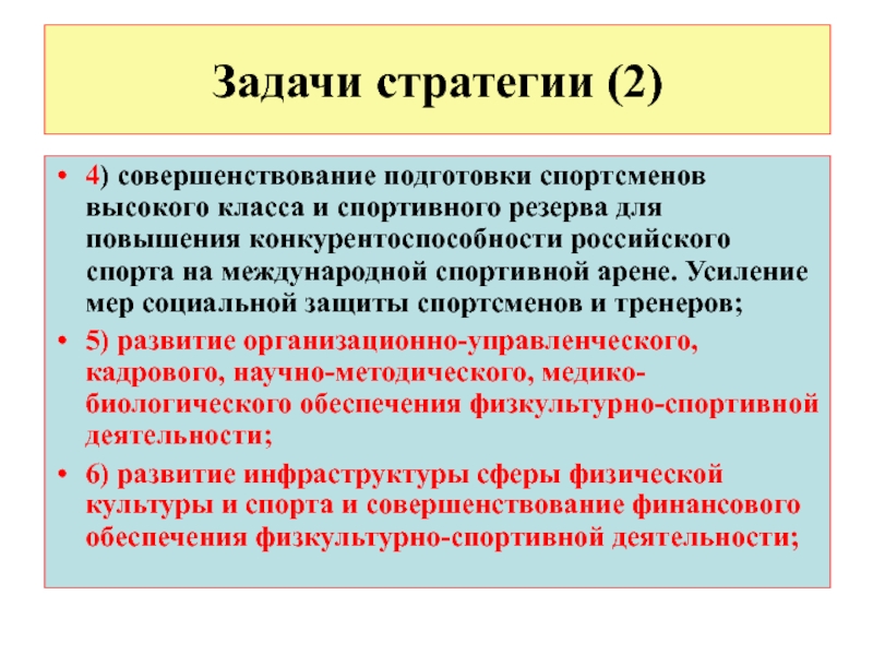 для повышения конкурентоспособности российского спорта на международной спортивной арене. Усиление мер социальной защиты спортсменов и тренеров;