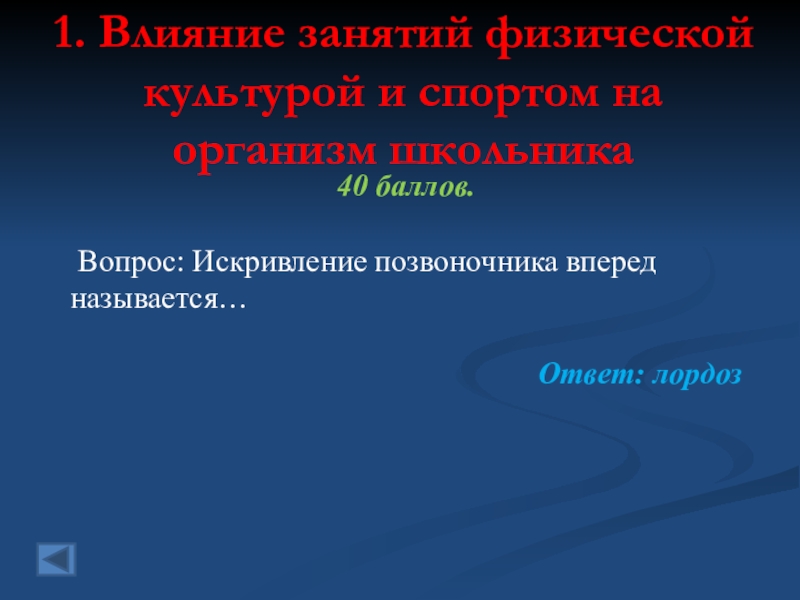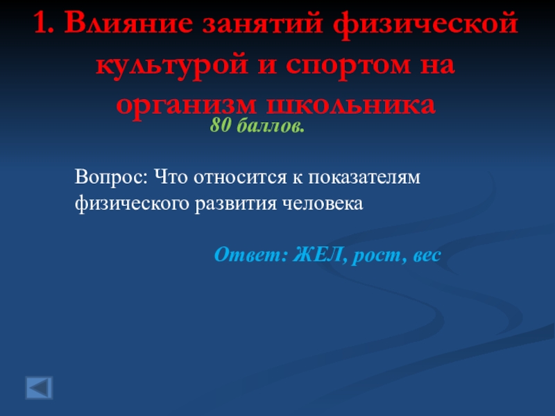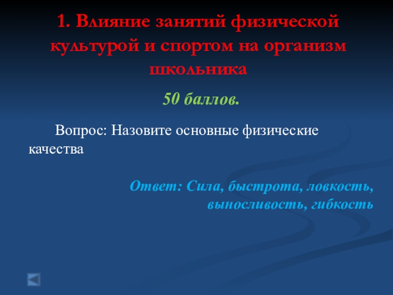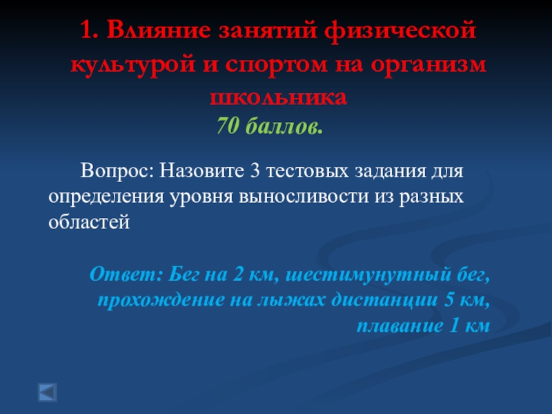 1. Влияние занятий физической культурой и спортом на организм школьника  50 баллов.