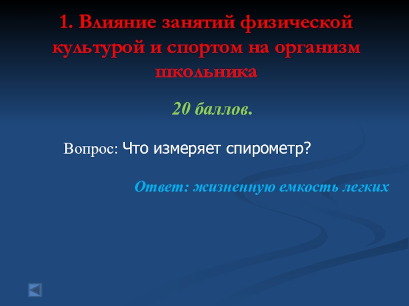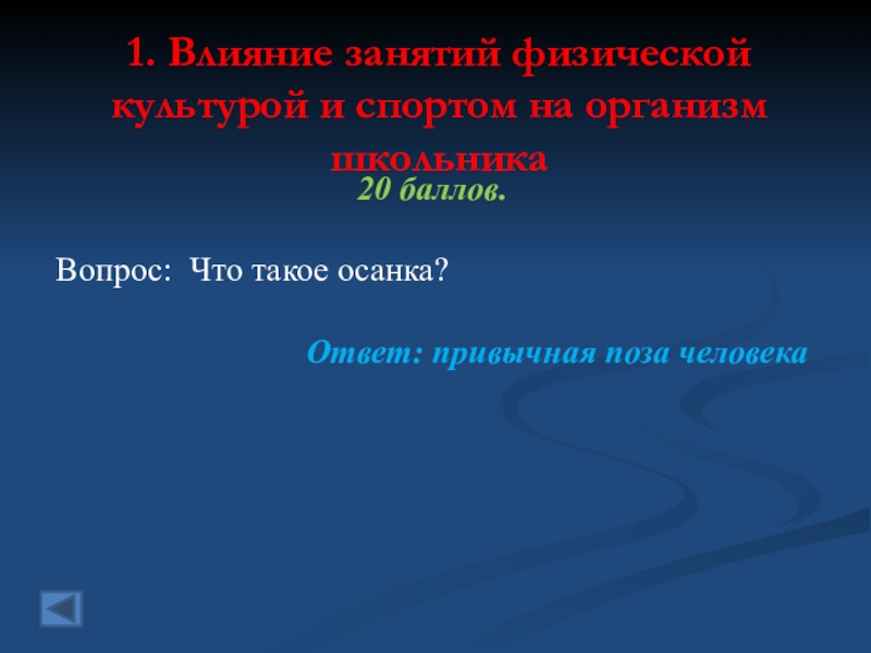 1. Влияние занятий физической культурой и спортом на организм школьника  20 баллов.