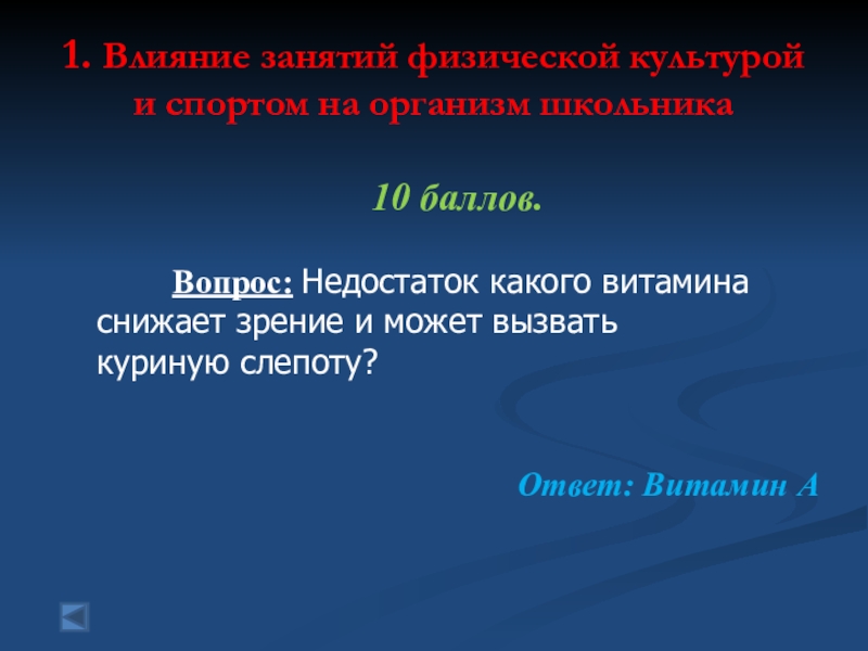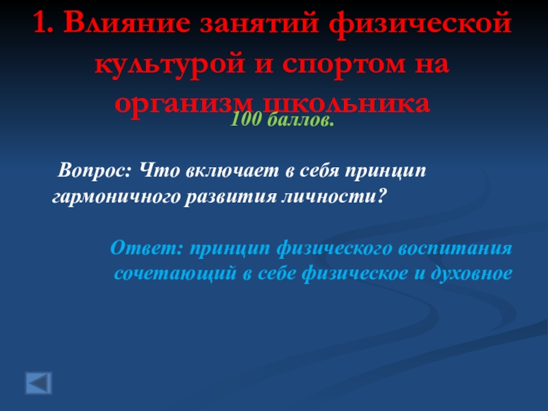 1. Влияние занятий физической культурой и спортом на организм школьника 10 баллов.