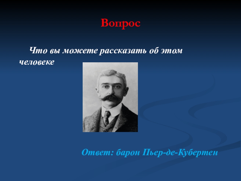 Вопрос   Что вы можете рассказать об этом человекеОтвет: барон Пьер-де-Кубертен