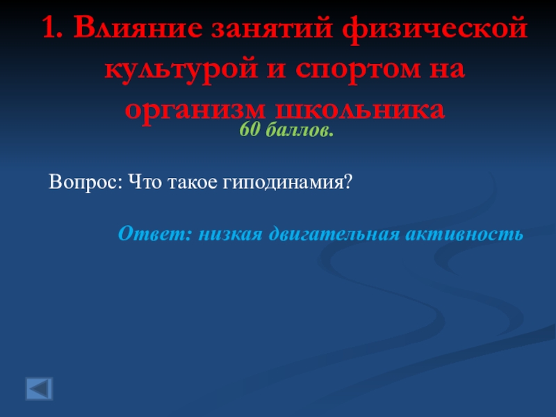 Слайд 5 1. Влияние занятий физической культурой и спортом на организм школьника