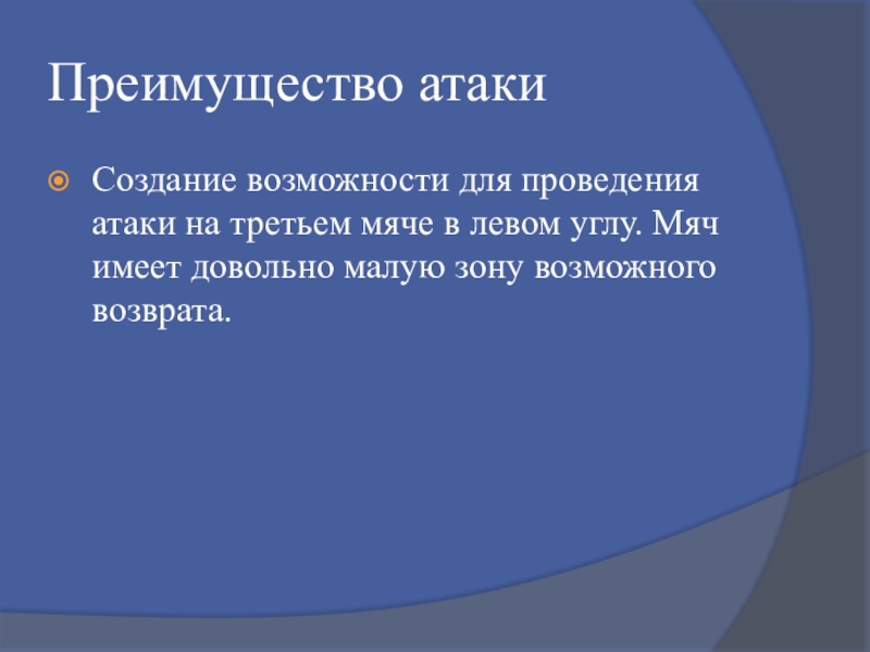 Мы заранее знаем область, куда попадает мяч и мы можем заранее подготовится к проведению сильной атаки.