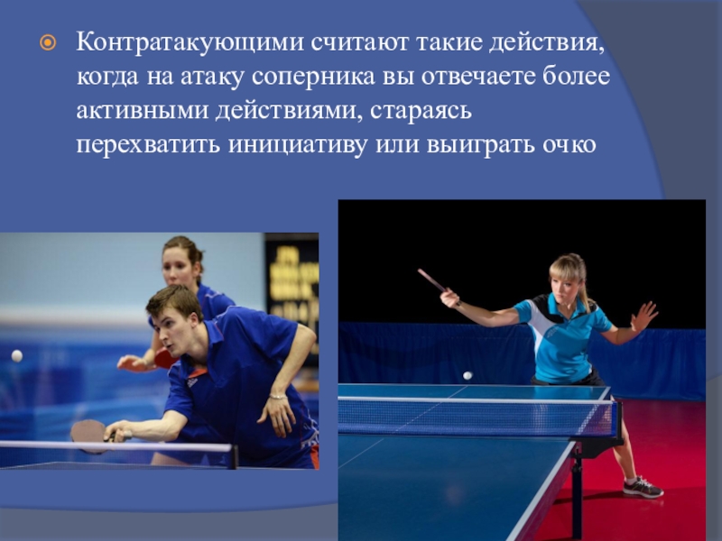 Слайд 9Контратакующими считают такие действия, когда на атаку соперника вы отвечаете более