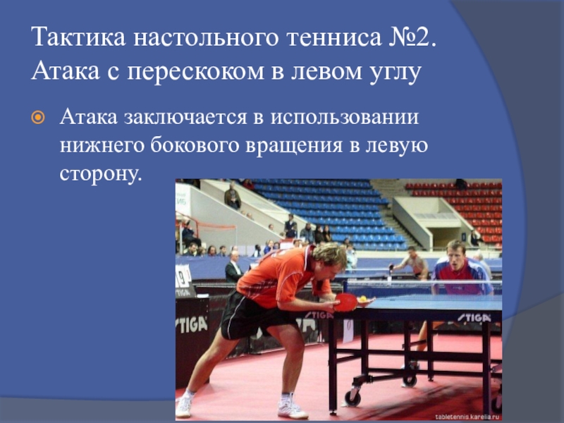 Слайд 22Тактика настольного тенниса №2. Атака с перескоком в левом углу