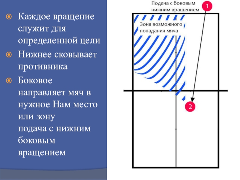 Слайд 24При такой подачи мяч стремится вернутся в левый квадрат и если