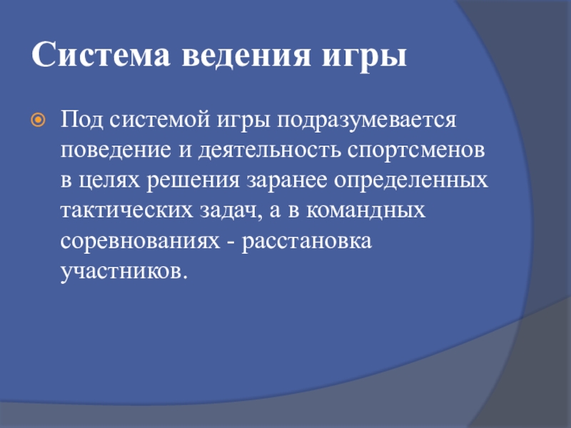 Под системой игры подразумевается поведение и деятельность спортсменов в