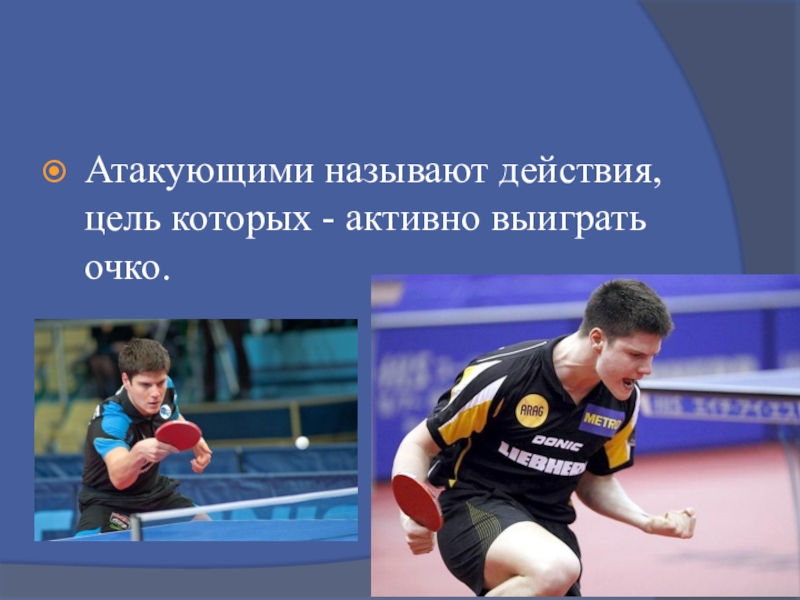 Слайд 8Атакующими называют действия, цель которых - активно выиграть очко.
