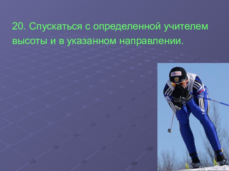 Слайд 2120. Спускаться с определенной учителем высоты и в указанном направлении.