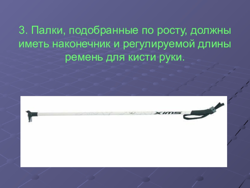 3. Палки, подобранные по росту, должны иметь наконечник и регулируемой длины